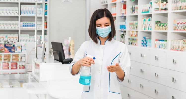 Cada puesto compartido, como la caja, debe ser desinfectado tras el cambio de turno, de manera que quien ingresa a la jornada laboral cuente con un entorno libre de impurezas y gérmenes; también es fundamental tener cerca gel a base de alcohol para que los clientes se desinfecten las manos al entrar a la farmacia, y para que tú lo utilices cada vez que has atendido a un consumidor. Es importante que te laves las manos con agua y jabón frecuentemente.